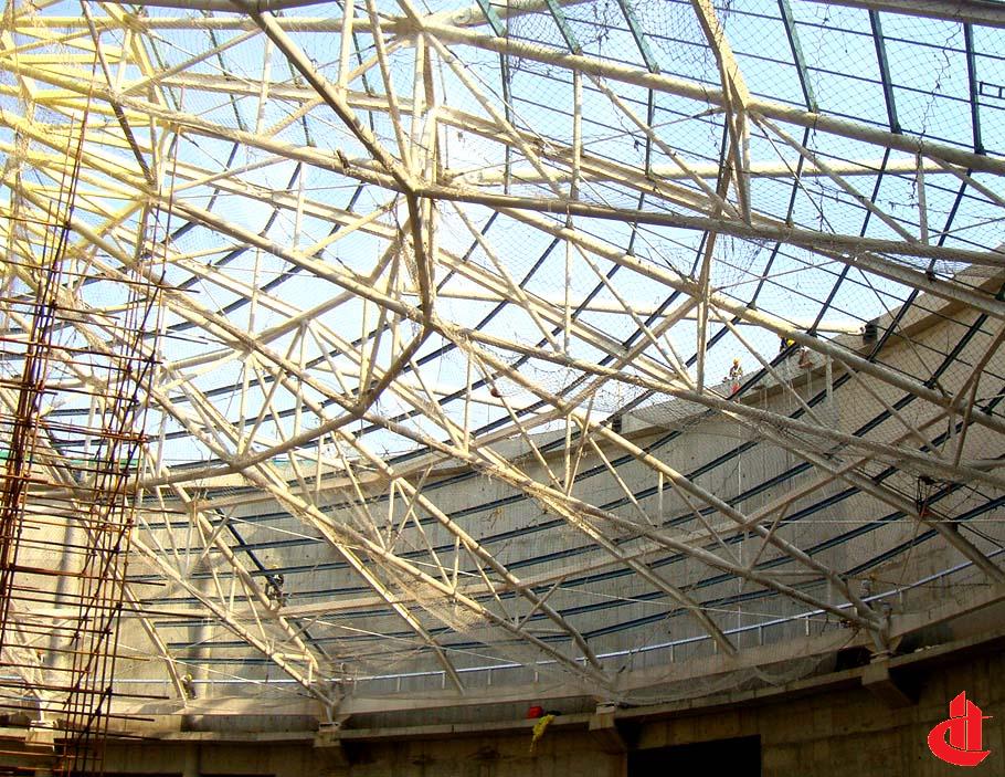 屋面板全部采用扇形板安裝,扇形板的定位和排板是本工程的重點(diǎn)。