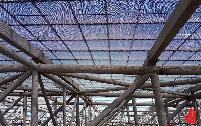 且天窗采用散射有機(jī)玻璃,避免陽(yáng)光對(duì)運(yùn)動(dòng)地板的損害,并通過(guò)配備電動(dòng)遮陽(yáng)裝置調(diào)節(jié)自然光,滿足白天正式比賽時(shí)的遮光要求。