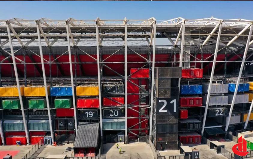 974球場(chǎng)矗立在卡塔爾首都多哈海濱,占地45萬(wàn)平方米,可容納40000名觀眾。建筑采用了“無(wú)主立面”的設(shè)計(jì)理念,以974個(gè)回收彩色海運(yùn)集裝箱作為主體結(jié)構(gòu),宛如一個(gè)巨大的樂(lè)高組合玩具。974這個(gè)數(shù)字同時(shí)也是卡塔爾的國(guó)際區(qū)號(hào)。