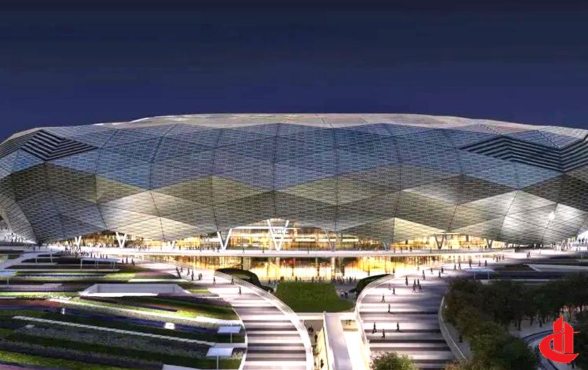 教育城球場(chǎng)位于多哈大學(xué)城,距離多哈市中心15公里。球場(chǎng)的頂部由金屬板覆蓋,整個(gè)結(jié)構(gòu)呈菱形排列,立面飾有5200個(gè)三角形,相互連接成鉆石狀的幾何圖形,在白天將隨著太陽(yáng)的移動(dòng)閃閃發(fā)光,因此有著 "沙漠中的鉆石"之稱(chēng)。